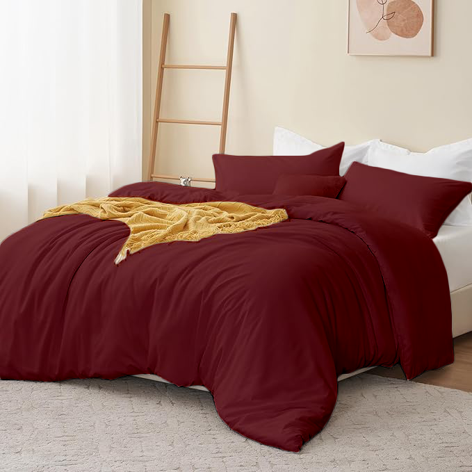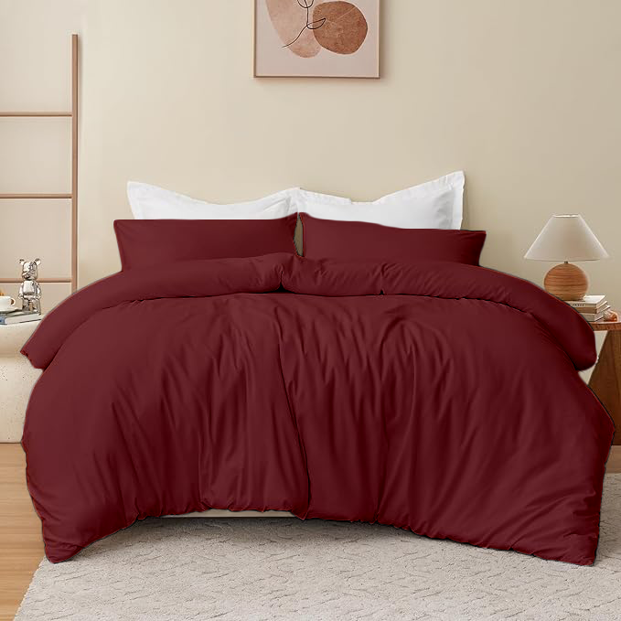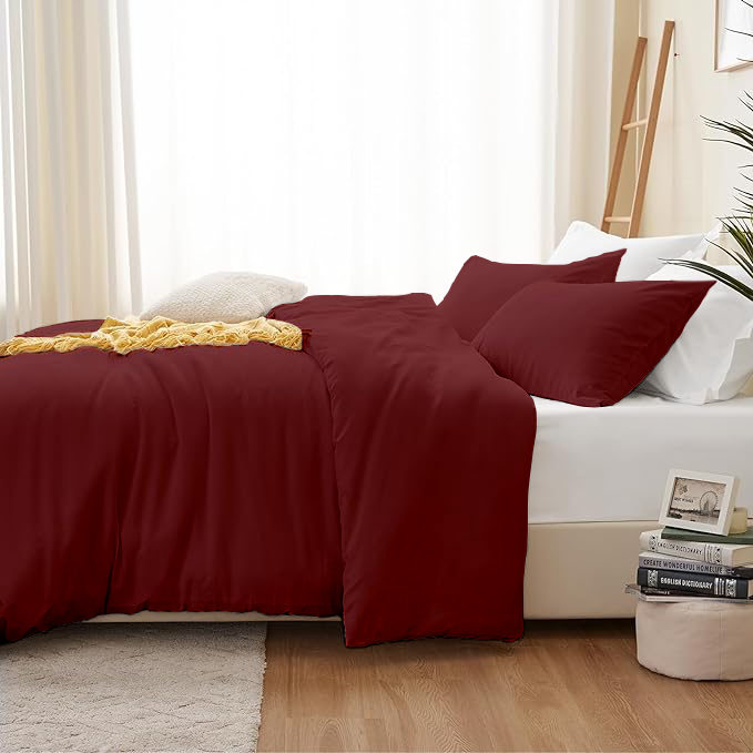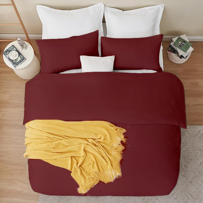 KASHILON Polyester 100% Brushed Microfiber Quilt/Comforter Cover Set with 2 pcs Pillow Cover with Zipper Closure & Corner Ties| Colour : Burgundy