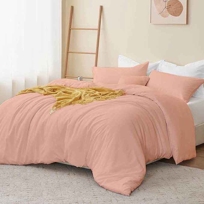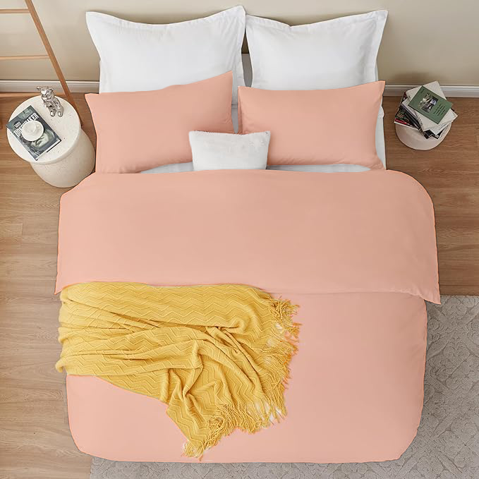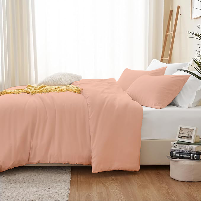 KASHILON Polyester 100% Brushed Microfiber Quilt/Comforter Cover Set with 2 pcs Pillow Cover with Zipper Closure & Corner Ties| Colour : Peach